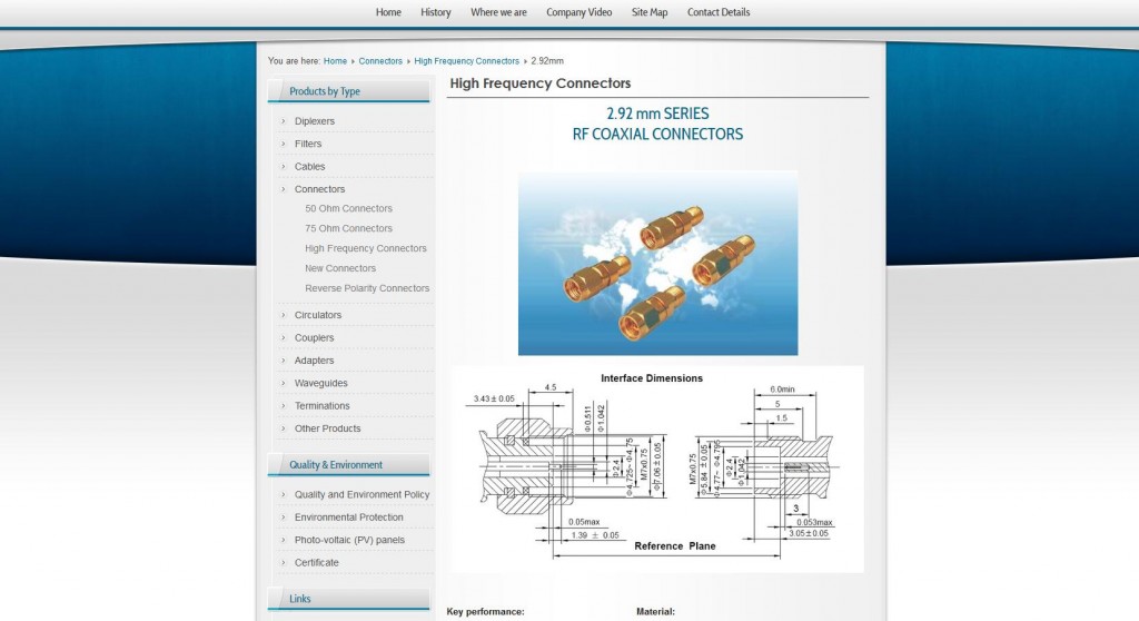 Sito realizzato in Inglese per una importante Azienda di Componenti per le comunicazioni.